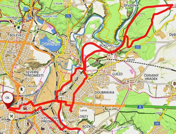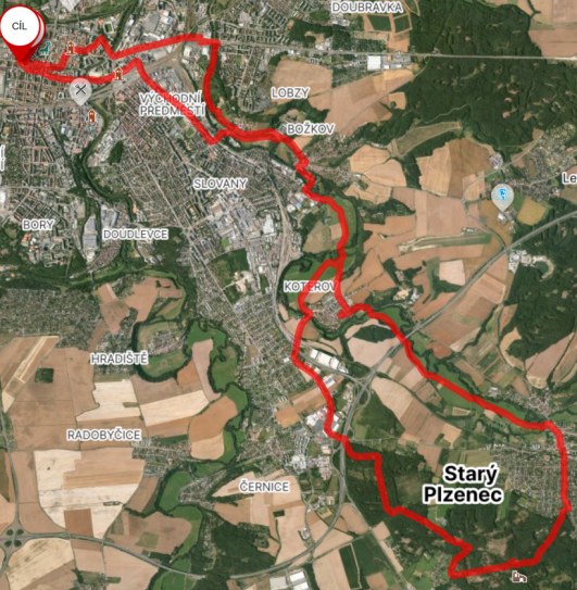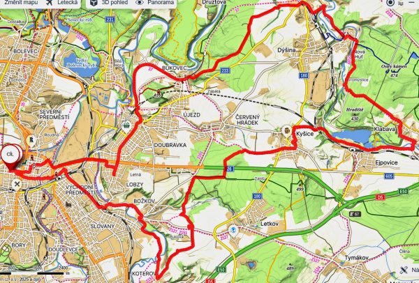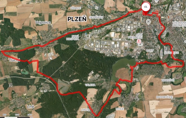 | Trasa | 29,95 km | Do Tlučné podél Vejprnického potoka po cyklostezce to byla v pohodě. V Tlučné lesem na Myslinku. Lesem cestou s pokácenými stromy. Na pole s neuvěřitelným bahnem. Kola se přestaly točit. Tuny bahna na kolech. A do Vochova. Z Vochova po silnici do Křimic. A ji po asfaltě podél Me na Potraviny. | ||||