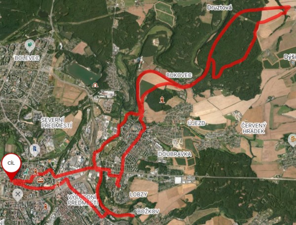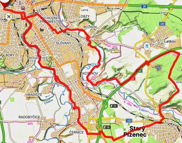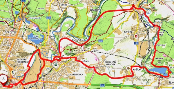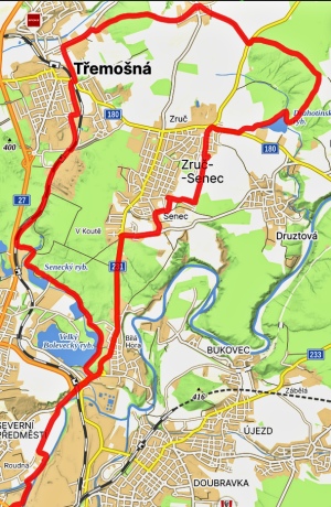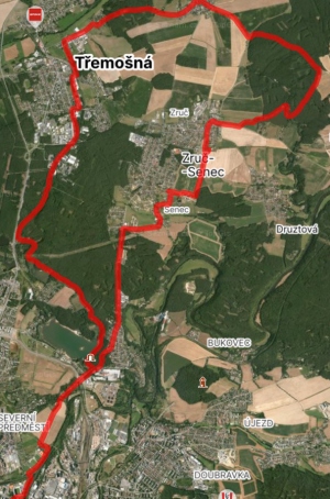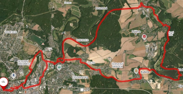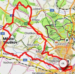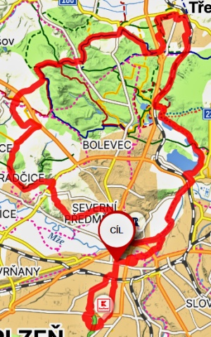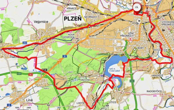 | Trasa | 29,95 km | Do Tlučné podél Vejprnického potoka po cyklostezce to byla v pohodě. V Tlučné lesem na Myslinku. Lesem cestou s pokácenými stromy. Na pole s neuvěřitelným bahnem. Kola se přestaly točit. Tuny bahna na kolech. A do Vochova. Z Vochova po silnici do Křimic. A ji po asfaltě podél Me na Potraviny. | ||||
