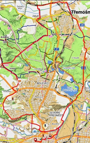 | Mapy | Trasy v mapě jsou uloeny na portále mapy.cz. Po odklepnutí fotomapy se dostanete na stránku mapy. Po klepnutí na mapu se dostanete na mapu cykloserver.cz. To vše třeba pro pořádné zvětšení mapy a dalších podrobností na mapě. | |